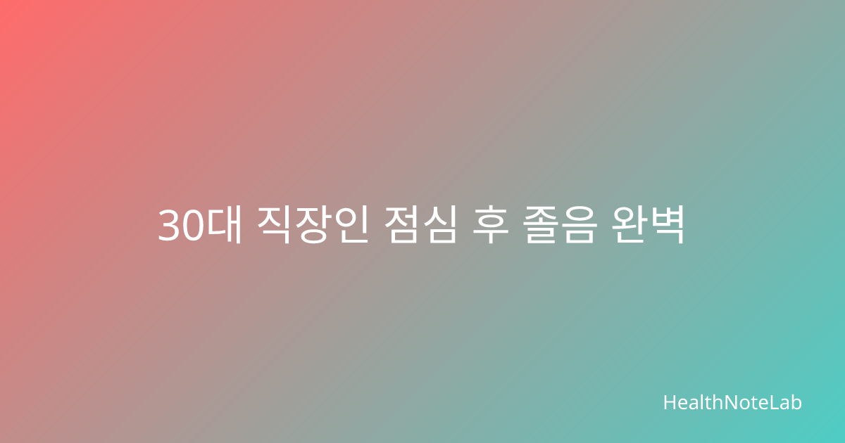 30대 직장인 점심 후 졸음 완벽 해결법 점심을 먹고 나면 어김없이 찾아오는 졸음 때문에 업무에 집중하기 어려우신가요? 특히 30대 직장인들은 업무 강도가 높아지면서 점심 후 오후 시간대 집중력 저하로 인한 업무 효