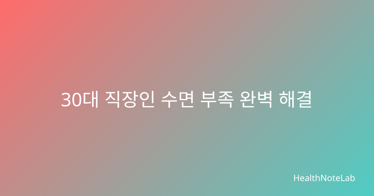 30대 직장인 수면 부족 완벽 해결 가이드